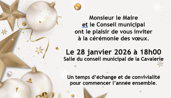 Salle du conseil municipale de La Cavalerie Monsieur le Maire et le Conseil Municipal ont le plaisir de vous inviter à la cérémonie de vœux : un temps d’échange et de convivialité pour commencer l’année ensemble.