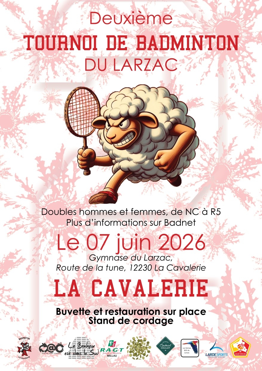 DEUXIEME TOURNOI DE BADMINTON DU LARZAC – DIMANCHE 7 JUIN 2026