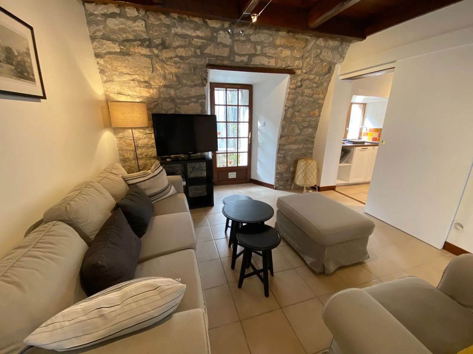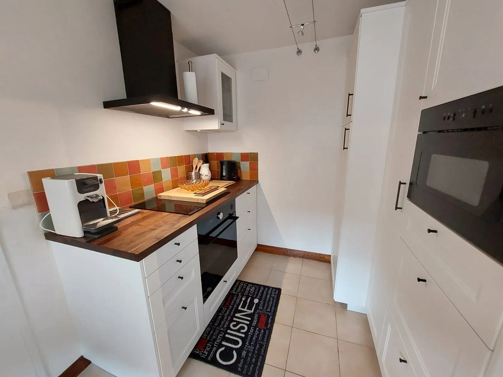 Ce sympathique gîte, mitoyen, est aménagé sur deux niveaux. Au rez-de-chaussée, vous profiterez d’un séjour lumineux avec cheminée, canapé, playstation 4 sur demande, télévision (avec accès internet/wifi) ainsi que d’une cuisine intégrée moderne (lave-vaisselle).